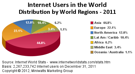 ผลการจัดอันดับทวีปที่มีผู้ใช้อินเทอร์เน็ตมากที่สุด ปี 2011